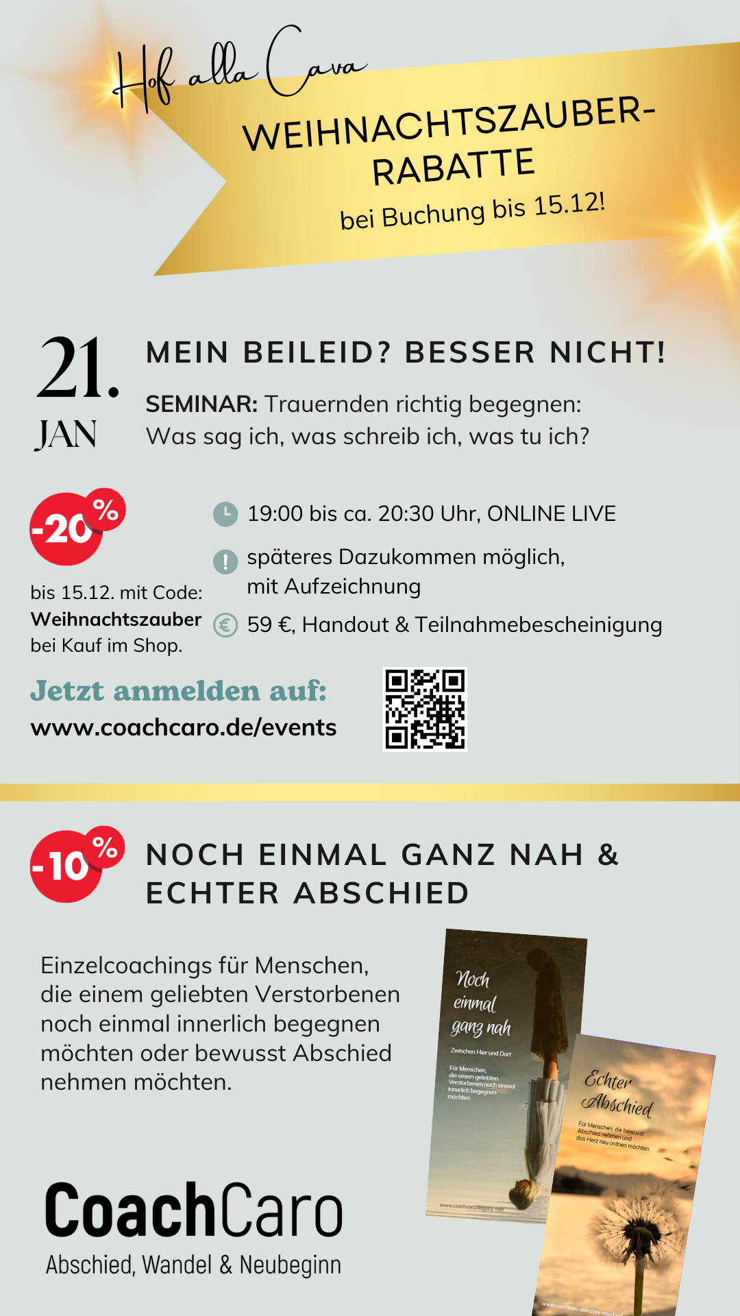 20 % Rabatt mit Code Weihnachtszauber auf das Seminar „Mein Beileid? Besser nicht! im Shop.